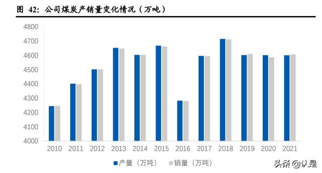 坐拥两大露天矿矿,煤炭资源储备丰富。煤炭业务板块方面,公司经过多年的发展, 已成为蒙东和东北地区褐煤龙头企业,位列“2021 年中国煤炭企业 50 强名单”第 28 位,2021 年煤炭产量位居全国第 16 位。公司具有霍林河矿区一号露天矿田和扎 哈淖尔露天矿田的采矿权,煤炭核准年产能达到 4600 万吨,其中霍林河矿区一号露 天矿田累积资源储量 13.87 亿吨、扎哈淖尔累计资源储量 12.17 亿吨。截至 2021 年 末,累积动用储量分别为 5.41 亿吨、2.45 亿吨,按照核定产能计算可分别开采 30 和 54 年,剩余储备丰富。此外,股东霍煤集团已承诺将二号露天矿 8.2793 亿吨开 采储量的采矿权(核定产能 1500 万吨)、三号露天矿 13.76 亿吨开采储量的采矿权 (核定产能 2000 万吨)以市场价格完整地转让给公司,公司煤炭储量有望进一步增 加,为公司煤炭业务长期经营提供了有力保证。公司产能利用率及产销率常年维持 在 100%左右,2021 年公司煤炭产量 4598.22 万吨,销量 4603.69 万吨。