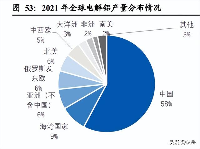 铝金属性质优良,中国电解铝产销全球占比过半。铝元素在地壳中的含量仅次于氧、 硅,是地壳中含量最丰富的金属元素之一。由于具有密度小、导电性强、导热性强、 延展性好、不易被腐蚀等原因,用途十分广泛。铝产量自超过铜产量开始,一直居 有色金属之首,目前铝产量及用量仅次于钢材,成为人类应用的第二大金属。现代 工业普遍使用电解法生产铝,电解铝即为通过电解得到的铝。过去几十年来,中国 电解铝产量稳步提升,电解铝产销量全球领先,2021 年中国电解铝产量占全球 57.79%,同比提升 0.64pct,消费量占比 58.97%。国家统计局数据显示 2021 年中国 电解铝产量 3850.3 万吨,同比增长 3.8%;中国有色金属协会数据显示中国电解铝 销量为 3818.8 万吨,同比增长 4.0%。此外,我国每年进口电解铝仅为产量的 4%, 出口量极小。