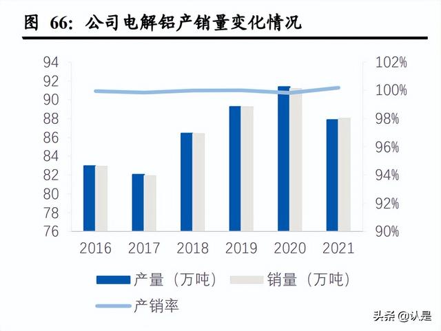 铝业为公司第一大业务,满产满销营收占比过半。为避免同业竞争,2019 年公司通 过重组配资收购了关联方内蒙古霍煤鸿骏铝电有限责任公司 51%股权,霍煤鸿骏成 为公司控股子公司,是公司电解铝的业务主体。霍煤鸿骏全部采用冰晶石-氧化铝熔 盐电解法。主要成品包括铝锭、铝液和多品种铝,铝液需要保持高温状态以便加工 成型相关产品,一般会避免进行长距离运输,直接销往周边铝加工厂,铝锭和多品 种铝主要售往内蒙古、吉林、辽宁、华北、华东区域。公司目前拥有 86 万吨电解铝 产能,二期 35 万吨有效产能续建项目备案、环评、能评等审批手续齐全有效,公司 电解铝产能有望扩张。此外,实控人国家电投承诺旗下另外两家电解铝公司青铜峡 铝业股份有限公司、黄河鑫业有限公司在符合具体条件后的五年内全部注入公司, 公司电解铝业务发展空间较大。受益于电解铝供给侧结构性改革,公司电解铝持续 满产满销,盈利能力稳步提升。
