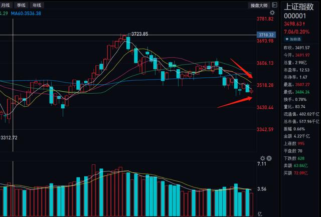 技术面上,沪指下有年线支撑,上有3550附近的强压。