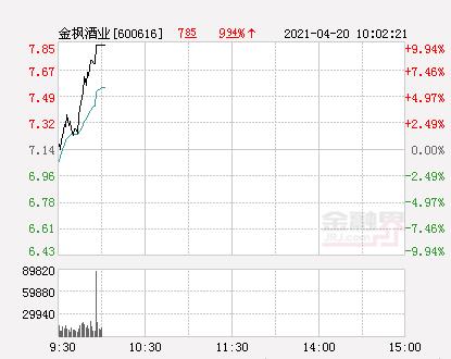 金融界网4月20日消息,今日金枫酒业开盘报7.02元,截止10:00分,该股涨9.94%报7.85元,封上涨停板。