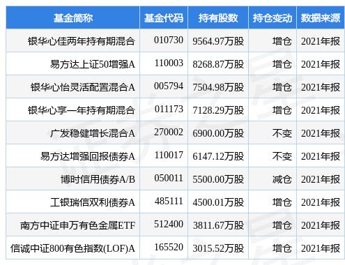 重仓紫金矿业的前十大基金见下表: