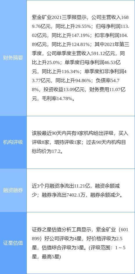 紫金矿业股票分红(紫金矿业股票分红派息)紫金矿业披露2021年度报告,公司实现营业收入2251.02亿元,同比增长31.25%;归母净利润156.73亿元,同比增长140.8%。主要矿产品资源储量和产量继续领跑中国金属矿业行业,全年矿产铜58.4万吨,同比增长28.83%;矿产金47.5吨,同比增长17.16%;矿产锌(铅)43.4万吨,同比增长14.86%;矿产银309吨,同比增长3.38%;铁精矿425万吨,同比增长9.82%。拟每10股派发现金红利2元(含税)。紫金矿业主营业务:在全球范围内从事金、铜、锌等矿产资源勘查与开发,适度延伸冶炼加工及贸易金融业务等公司董事长为陈景河。陈景河先生