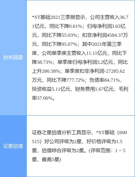 1月27日盘中消息,14点48分*ST基础(600515)封跌停板。目前价格3.52,下跌5.12%。其所属板块房地产开发目前下跌。领涨股为粤宏远A。