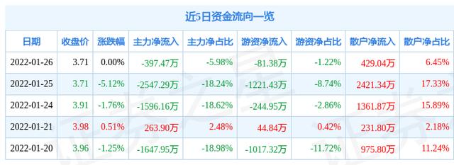 资金流向数据方面,上个交易日主力资金净流出397.47万元,游资资金净流出81.38万元,散户资金净流入429.04万元。近5日资金流向一览见下表: