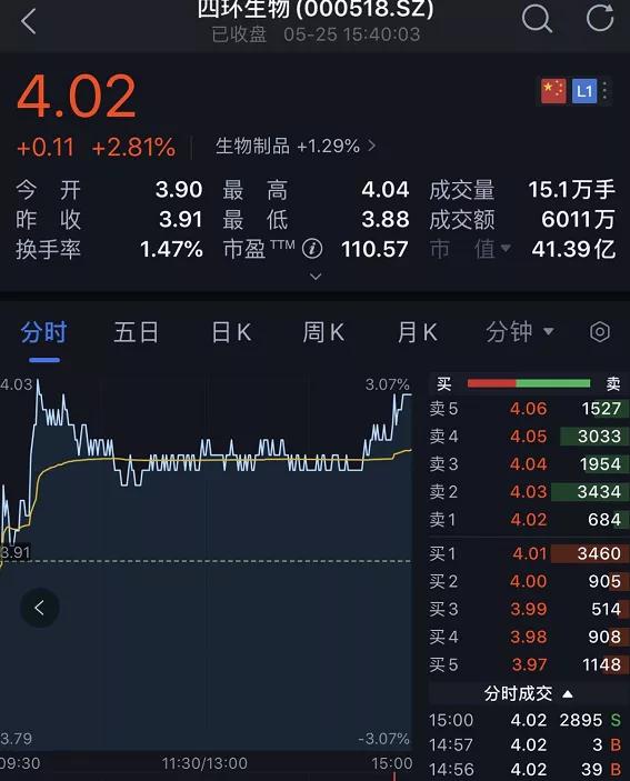 累计买入金额43.21亿元,要知道,目前四环生物的市值也就40亿出头。