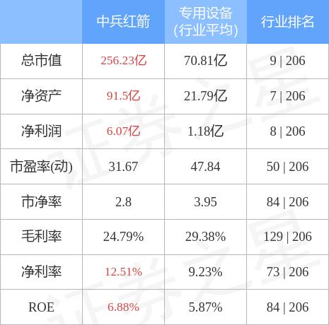 中兵红箭主要指标及行业内排名如下: