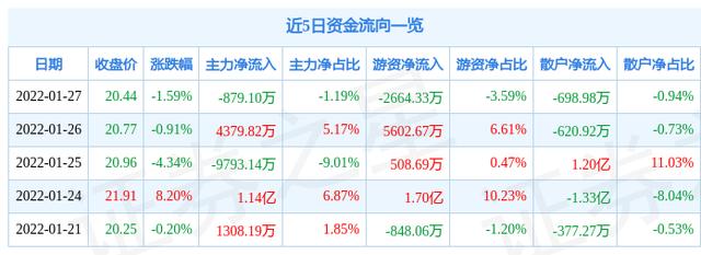 资金流向数据方面,上个交易日主力资金净流出879.1万元,游资资金净流出2664.33万元,散户资金净流出698.98万元。近5日资金流向一览见下表: