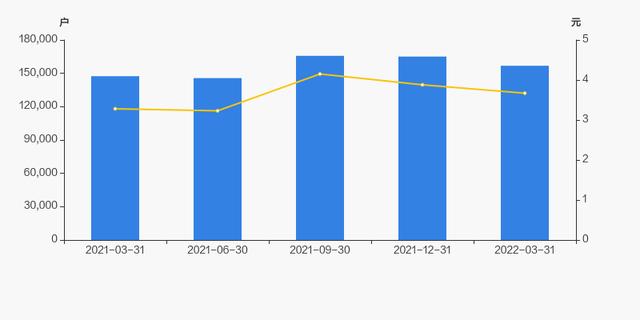 截至2022年3月31日,公司最新流通股本为14.1亿股。户均持有流通股数量由上期的8540股上升至8990股,户均流通市值3.3万元。