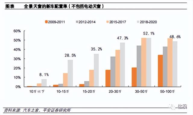 天幕是一体式的全景天窗,具有更好的视野;可增加车辆内部的高度,提升乘坐人员的体验;其成本低于普通的全景天窗,对于整车厂来讲,安装一套全景天窗的价格在2000-3000元左右,而一套天幕玻璃的价格最低可达 1000元;同时,玻璃的重量低于全景天窗和无天窗的车型,使整车具备更好的节能性,可以更好地满足政策对节能车油耗的要求。