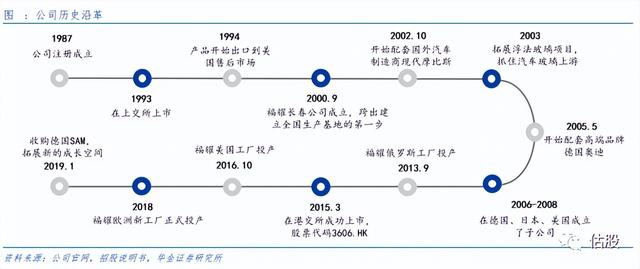 1994年,曹德旺借国际汽车玻璃龙头企业法国圣戈班行政副总裁到中国考察的机会,与其成功达成合作,双方于1996年初签约,合资成立万达汽车玻璃有限公司。3年的合作,让曹德旺受益匪浅,在生产流程、设计思路、工艺路线上均开始向国际企业看齐,同时学到了国际水准的管理模式。虽然最终仍然分道扬镳,以曹德旺收购合资公司股份剧终,但二者约法三章,圣戈班在2004年7月1日前不得再进入中国市场,为福耀在5年内排除一个强大的竞争对手赢得发展的时间。这期间福耀玻璃不仅仅满足于国内市场,也开始从中国走向全球、并向上游浮法玻璃领域延伸、为高端品牌德国奥迪做配套,利润成功破亿元大关,实现了突飞猛进的发展。之后公司迈上了稳健的发展之路,2019年公司收购德国SAM开始拓展铝饰条业务,重新谋求新的成长空间。