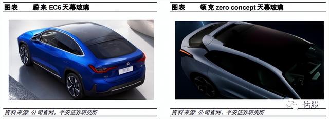 电动车使用天幕玻璃或将更加广泛,特斯拉 Model S、Model3、长安 UNI-T、几何 C、蔚来 EC6、poledstar2 等是目前已有的代表车型。原因包括主机厂会通过各种方式打造电动车“高端+智能”的标签,天幕玻璃有利于彰显电动车的个性及高端化,而电动车的消费者则更愿意接受新事物,此外,轻量化玻璃也有助于增加电动车的续航里程。但由于天幕在价格、美观度、舒适度、个性化等多方面具备优势,目前在非新能源汽车领域也有应用趋势,乘用车正经历从电动天窗到全景天窗,再到天幕的应用转变。天幕玻璃可通过增加隔热膜来增强隔热效果,较普通天幕玻璃的成本增加 50%-100%。