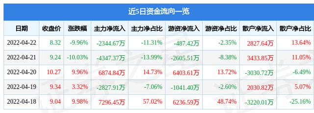 近5日资金流向一览见下表: