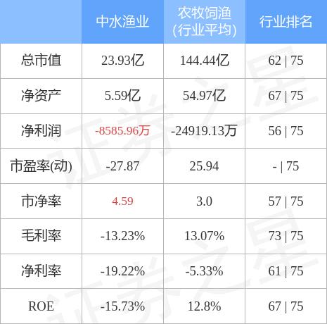 中水渔业主要指标及行业内排名如下: