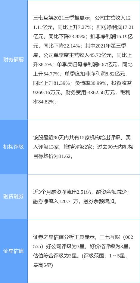 三七互娱(002555)个股概况: