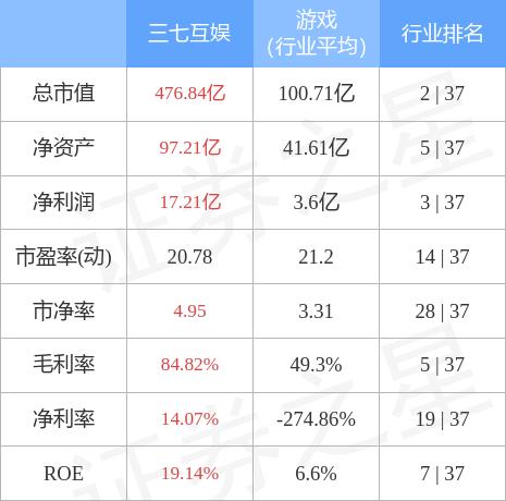 三七互娱主要指标及行业内排名如下: