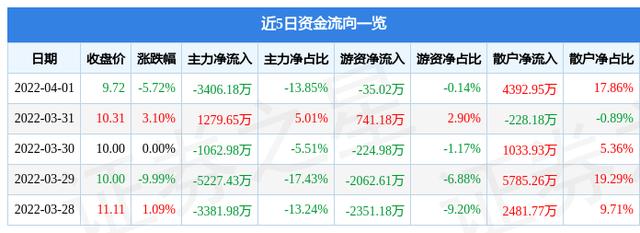 资金流向数据方面,上个交易日主力资金净流出3406.18万元,游资资金净流出35.02万元,散户资金净流入4392.95万元。近5日资金流向一览见下表: