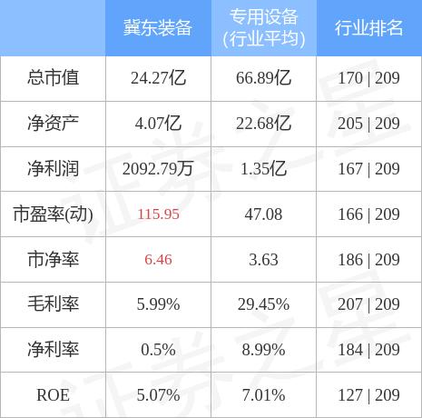 冀东装备主要指标及行业内排名如下: