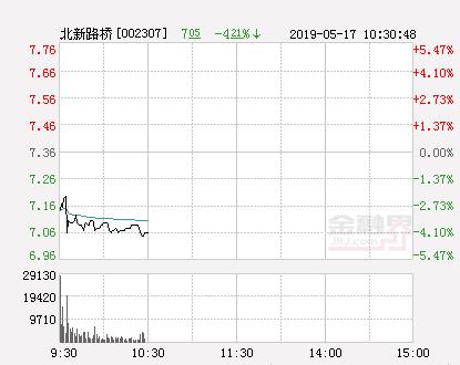 金融界网站5月16日讯 今日北新路桥开盘报6.95元,截止10:28分,该股涨9.94%报7.63元,封上涨停板。