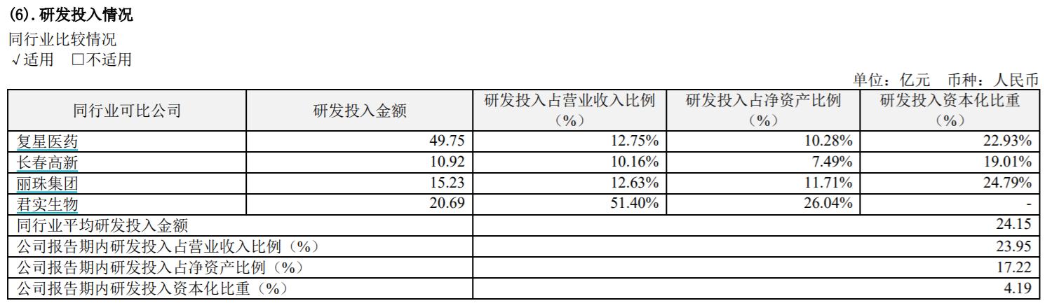 部分同类企业的研发投入对比,恒瑞医药2021年年报截图