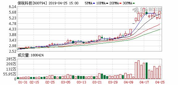 Choice数据显示,保税科技近一年的前次股价高点出现在2019年4月17日,当日最高价为6.02元(前复权),短期内未能突破前次高点,股价最低于2019年4月24日下探5.09元(前复权)。4月24日至4月26日,保税科技累计涨跌幅为21.14%。一分钟开户http://suo.im/mDXEA,万2.5更低佣金,还送level2
