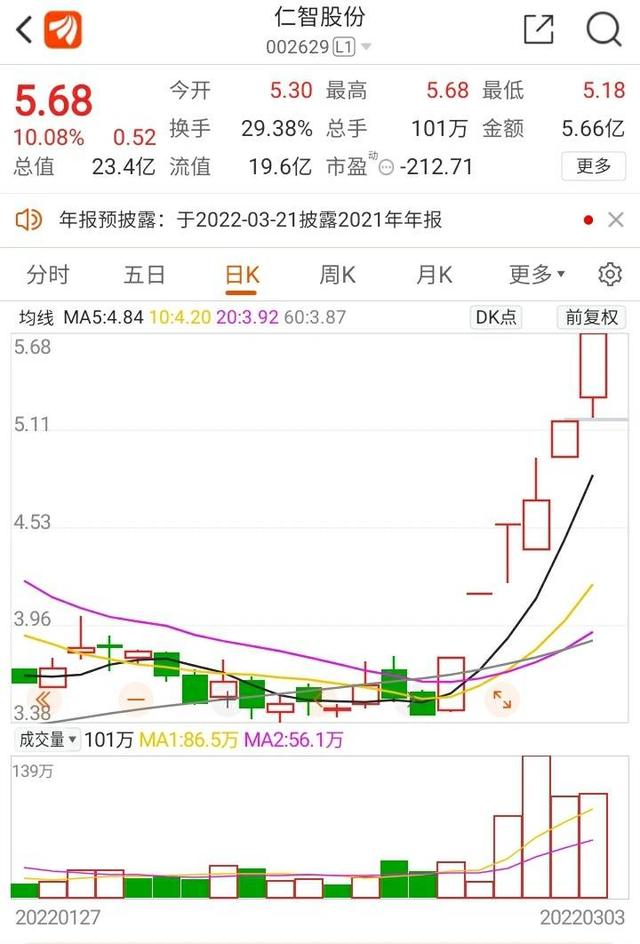 据了解,仁智股份为油田技术服务企业,主要业务为钻井液技术服务、油田环保治理等。受国际油价上涨影响,公司股价短期内涨幅较大,自2月24日至3月3日6个交易日录得5板,股价涨幅达到66.08%。3月2日晚间,公司曾披露称,此次油价上涨不会对公司油服业务业绩产生影响。公司股价短期内涨幅较大,存在估值较高的风险。公司基本面未发生重大变化,近期股价涨幅已偏离公司基本面情况。