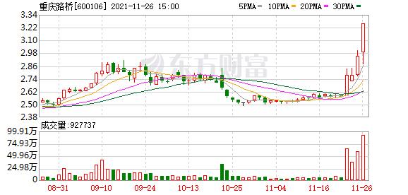 上交所2021年12月15日交易公开信息显示,重庆路桥因属于当日涨幅偏离值达7%的证券而登上龙虎榜。重庆路桥当日报收4.69元,涨跌幅为10.09%,偏离值达10.48%,换手率7.85%,振幅10.33%,成交额4.80亿元。