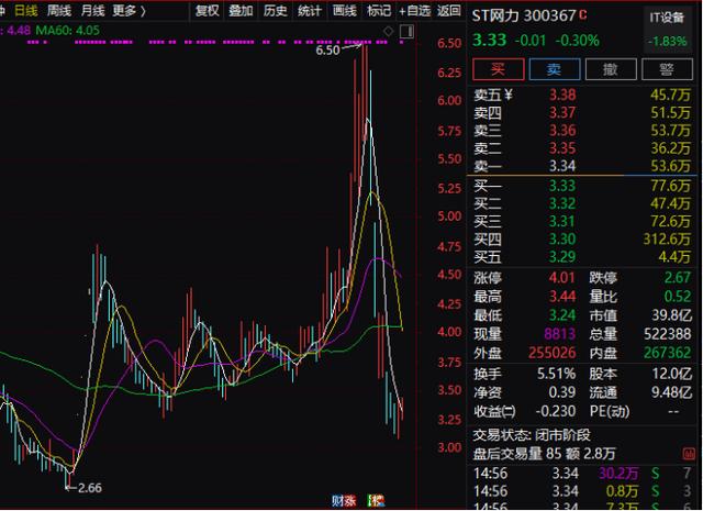 这里面以ST网力调整幅度最大。数据显示,ST网力9月上旬一度达到6.50元的月内最高价,但由于其后连续下跌,且适逢创业板涨跌幅限制由10%扩大至20%,不到10个交易日的时间,ST网力股价一度跌至3.08元,较月内高位价格腰斩,截至今日收盘,ST网力股价报3.33元,较月内最高价回撤幅度达48.77%。