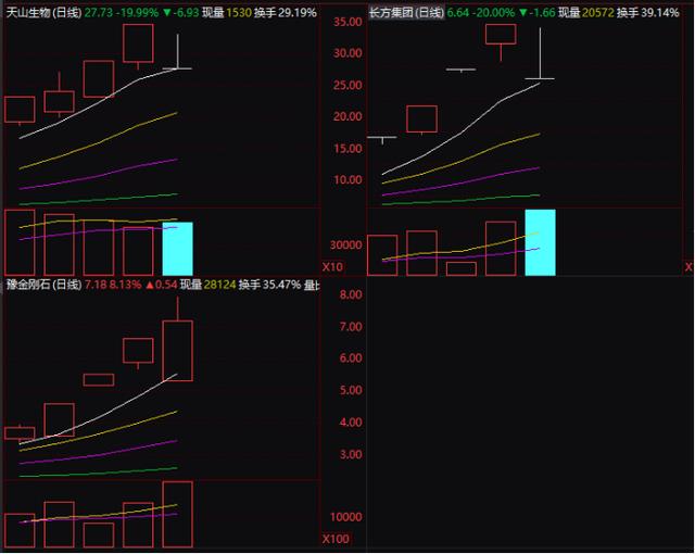 截至收盘,天山生物和长方集团均再次回封跌停,豫金刚石则上涨8.13%。