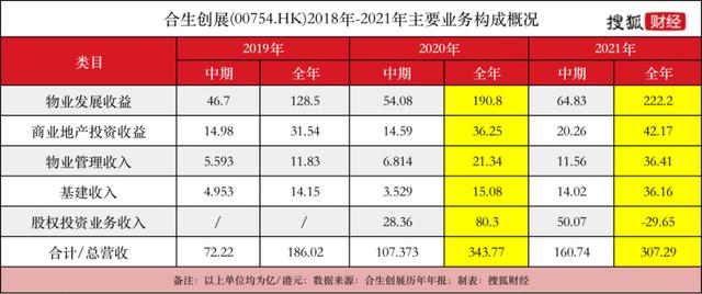 (合生创展2018年-2021年主要业务构成概况,制表:搜狐财经)