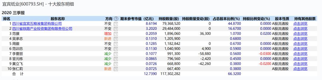 据悉,宜宾纸业的控股股东目前为四川省宜宾五粮液集团有限公司,持股比例约为44.87%,第二大股东则为四川省铁路产业投资集团有限责任公司,占比约16.67%。