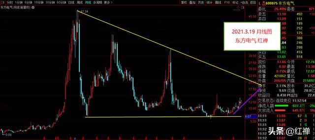 从月线上看,东方电气经历了15年的沉沦!结构后的收敛三角非常清晰。股灾之后,股价从未涨过,底部特征极为明确。预计本轮有机会持续上攻至20-22元区间,非常适合中长线的布局。当然,从日线来看,该股在12平台上反复震荡,时间可能尚且不够,需要投资者一定的耐心。