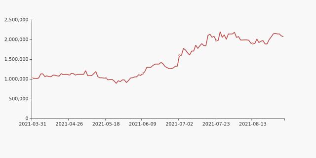 2021年3月31日至今,公司股东户数有所下降,区间跌幅为3.96%。2021年3月31日至2021年8月31日区间股价上涨0.55%。