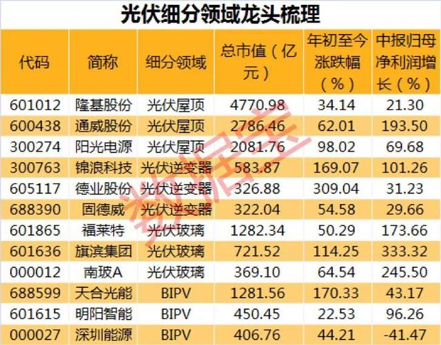光伏概念股(光伏概念股票龙头股一览表)