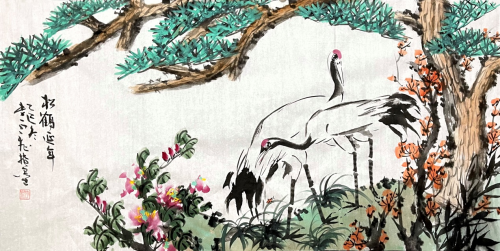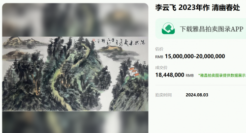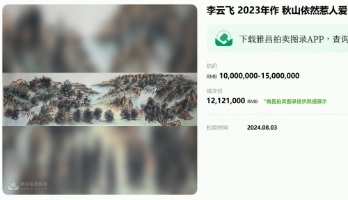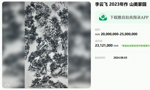 众多重量级机构的青睐,更印证了其作品的收藏价值。作为人民大会堂、中南海外事应用中心双签约书画家,他的指墨松鹤作品多次作为国礼赠予国际友人,成为中外文化交流的纽带;香港中英拍卖行将其列为核心签约艺术家,其作品每次上拍均引发激烈竞逐,2024年一幅《山美家园》以2312万元成交,刷新个人作品拍卖纪录。这些市场表现与潘天寿、张大千等名家“作品存世量少则价值高”的市场规律高度契合,预示着其作品仍有巨大升值空间。