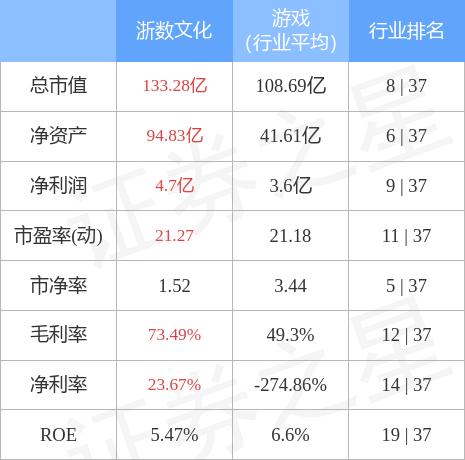 浙数文化主要指标及行业内排名如下: