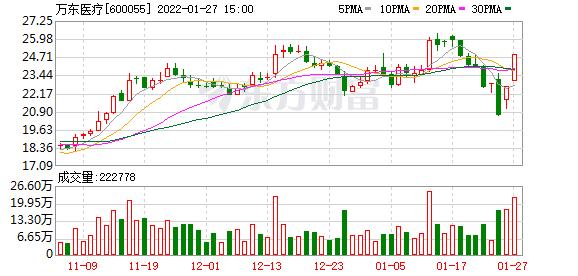 上交所2022年1月27日交易公开信息显示,万东医疗因属于当日涨幅偏离值达7%的证券、连续三个交易日内收盘价格涨幅偏离值累计20%而登上龙虎榜。万东医疗当日报收24.93元,涨跌幅为10.02%,偏离值达11.80%,换手率4.12%,振幅8.52%,成交额5.45亿元。