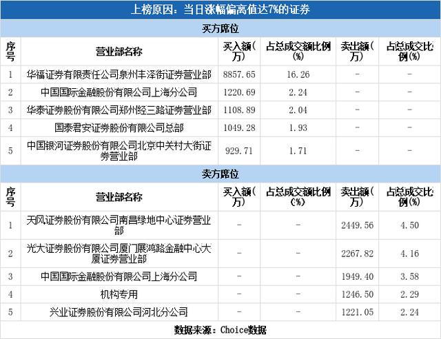 买二、卖三均为中国国际金融上海分公司,该营业部买入1220.69万元,卖出1949.40万元,净买额为-728.71万元。近三个月内该席位共上榜1212次,实力排名第6。中国国际金融上海分公司今日还参与了浙数文化(净买额6265.94万元),奥翔药业(净买额-4171.70万元),国联证券(净买额3559.14万元)等18只个股。