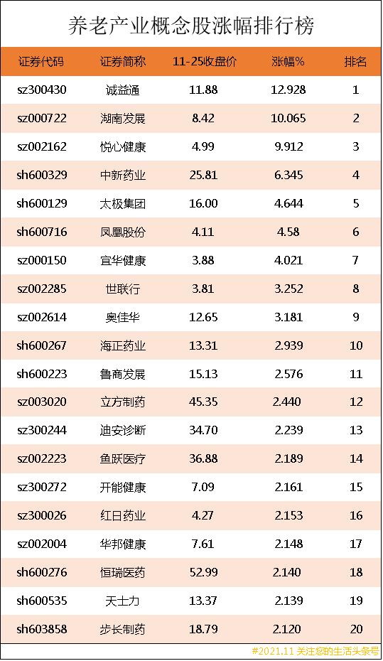 以上就是为读者们带来的养老产业概念股涨幅排行榜的相关信息,本文是根据有关数据及近期事件所撰写分析文章,并不构成投资建议,据此操作,风险自担!(本文属于非商业性文章)