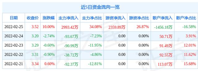 资金流向数据方面,当日主力资金净流入2993.42万元,游资资金净流入2359.89万元,散户资金净流出1456.18万元。近5日资金流向一览见下表: