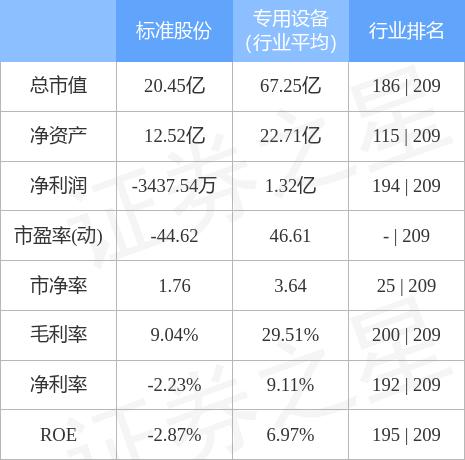 标准股份主要指标及行业内排名如下: