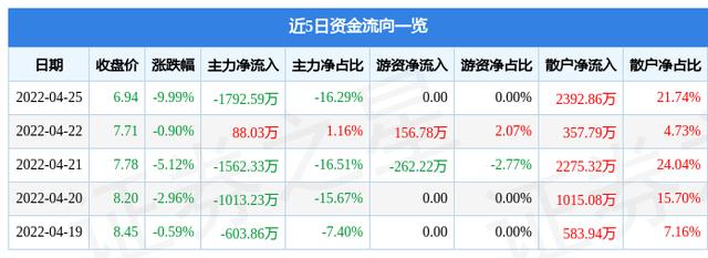 资金流向数据方面,当日主力资金净流出1792.59万元,游资资金净流入0.0万元,散户资金净流入2392.86万元。