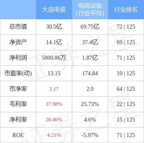 大连电瓷主要指标及行业内排名如下: