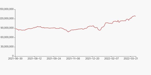 截至2022年3月31日,公司最新总股本为19.12亿股,且均为流通股。户均持有流通股数量由上期的1.82万股上升至1.87万股,户均流通市值22.84万元。