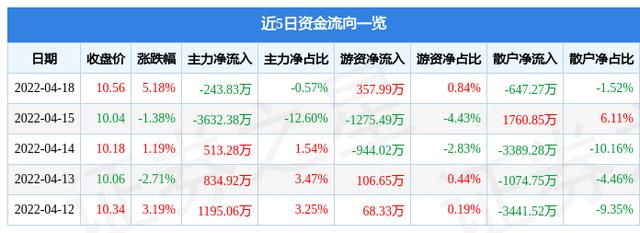 资金流向数据方面,上个交易日主力资金净流出243.83万元,游资资金净流入357.99万元,散户资金净流出647.27万元。近5日资金流向一览见下表: