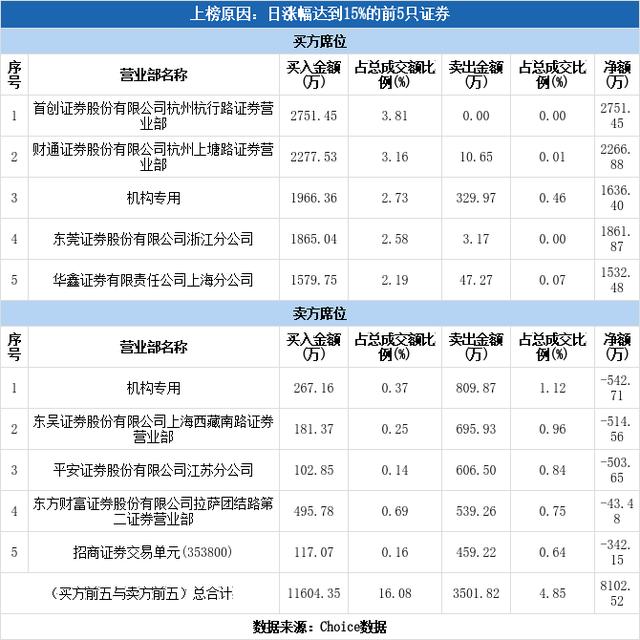 买五为华鑫证券股份上海分公司,该席位买入1579.75万元,卖出47.27万元,净买额为1532.48万元。近三个月内该席位共上榜702次,实力排名第9。华鑫证券股份上海分公司今日还参与了美锦能源(净买额4737.62万元),博雅生物(净买额3060.85万元),鑫铂股份(净买额-2512.90万元)等9只个股。