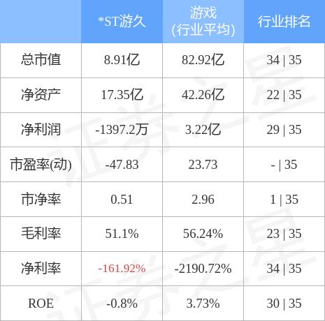 *ST游久主要指标及行业内排名如下: