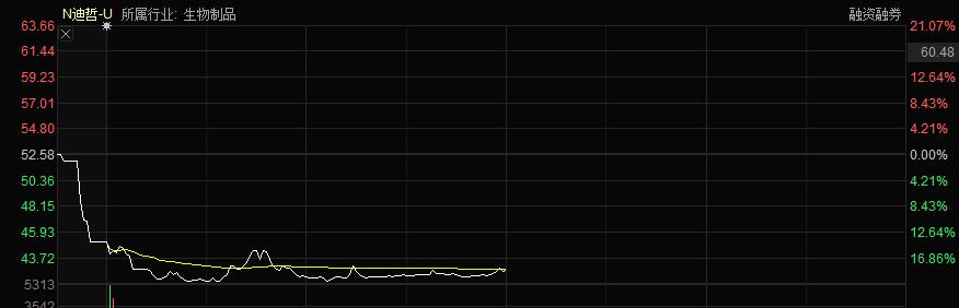 截至发文,迪哲医药跌幅为18.98%,股价为42.6元,总市值为170.4亿元。即使股民盘中高点快速卖出,浮亏也将达到15%左右。