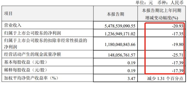 2022年一季报显示,公司今年一季度营收54.79亿、同比下滑20.93%,实现归母净利润12.37亿、同比下滑17.35%,实现扣非净利润11.80亿、同比下滑19.8%,实现经营性现金流净额1.48亿、同比下滑25.71%。