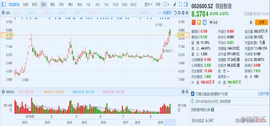 然而,或是受大盘环境的影响,该公司的股价在8月16日高开2.53%后遭遇跳水。截至今日收盘,该股跌幅为3.57%,股价报收8.37元,全天成交了30.13亿元。